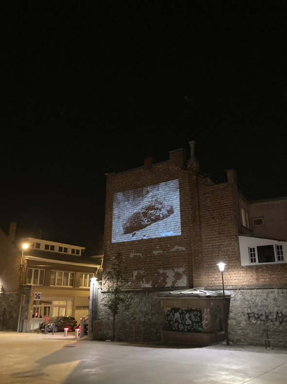 Et quand Thomas Gremes, un des régisseurs des Abattoirs de Bomel, se mobilise pour que nous projetions nos films / diaporamas à l’extérieur du bâtiment ↓