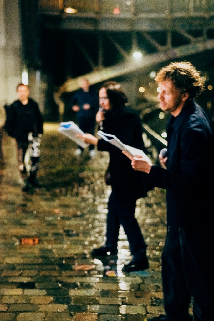 À l’initiative de la Maison de la Poésie de Namur, depuis un ailleurs lointain, les mots d’Henri Michaux, tout juste 40 ans après sa mort, ont remué la nuit et les rues de Namur le vendredi 18 octobre. Poésie, danse, musique et peinture s’y sont entremêlés. Un hommage immersif et audacieux que l’on doit aux artistes Laurence Vielle, Aurélien Dony, Jérôme Paque, Caroline Roche et Thierry Robrechts, rejoints en salle par Jean Loubry. Hommage qui – on s’en amuse quelque peu – aurait sans doute provoqué la réprobation de l’auteur connu pour son refus catégorique de voir son œuvre adaptée. En parallèle, nous proposions une exposition « Raccrochage » pour compléter le tableau, offrant ainsi un autre regard nourri par l’univers de l’écrivain.
