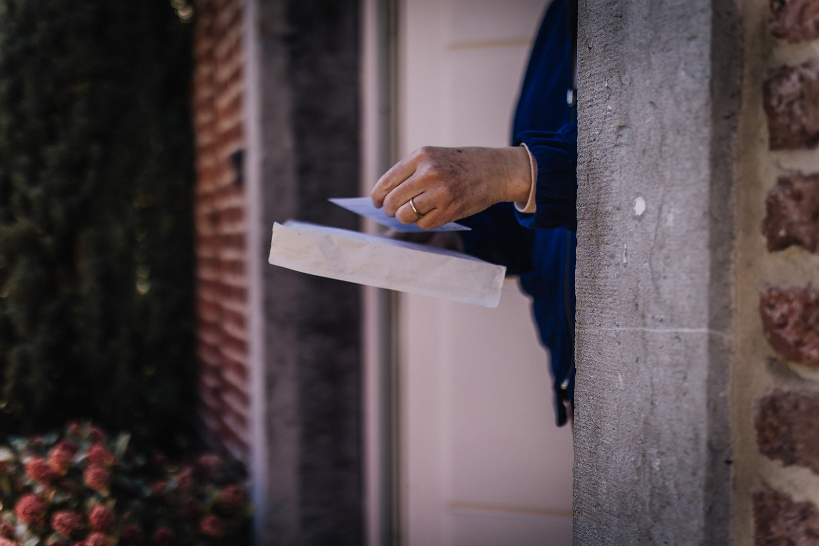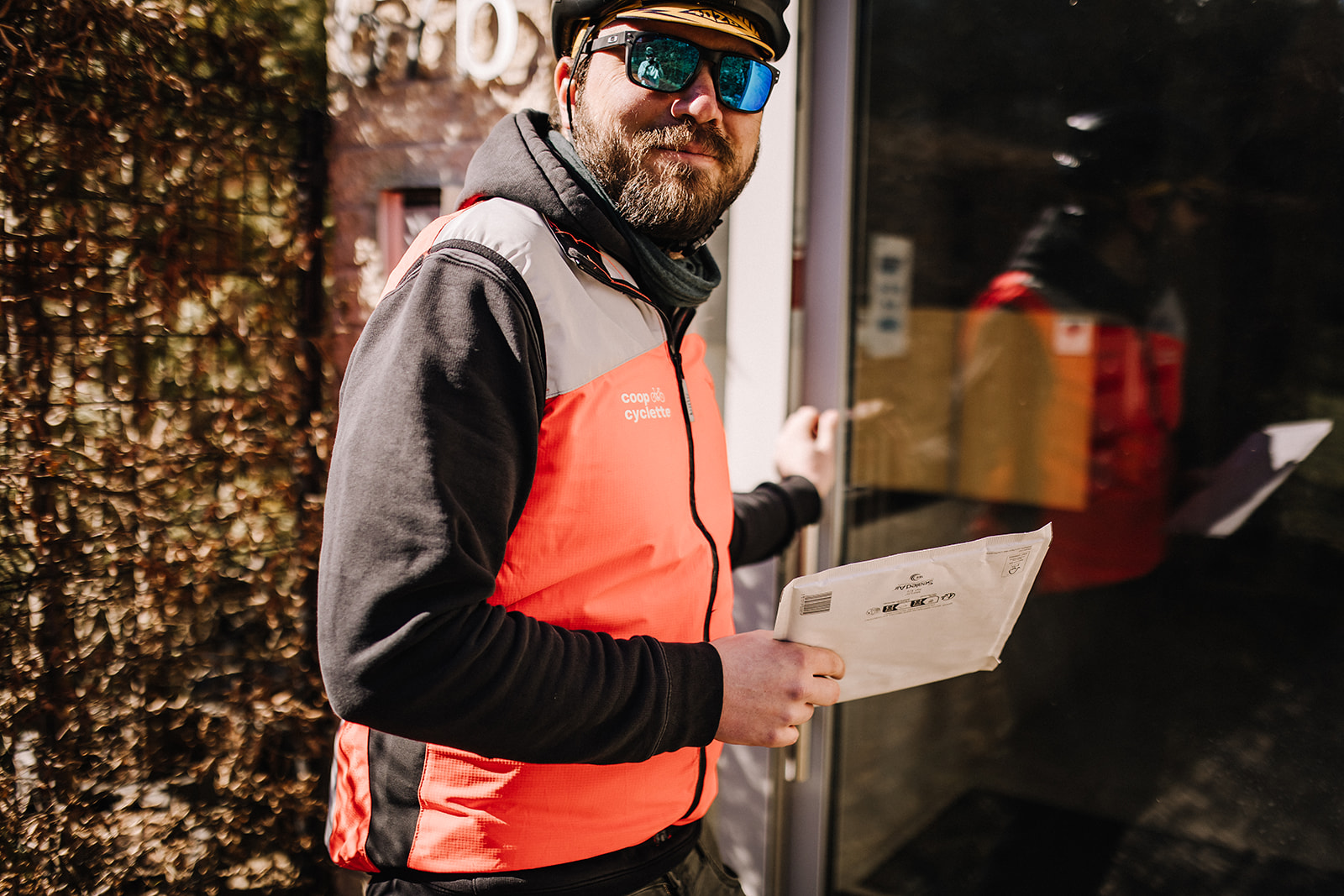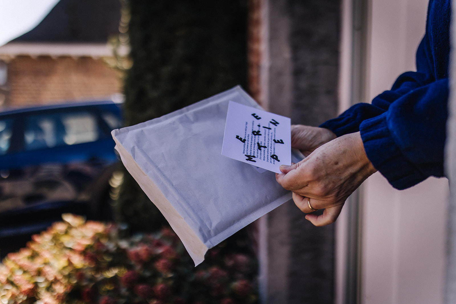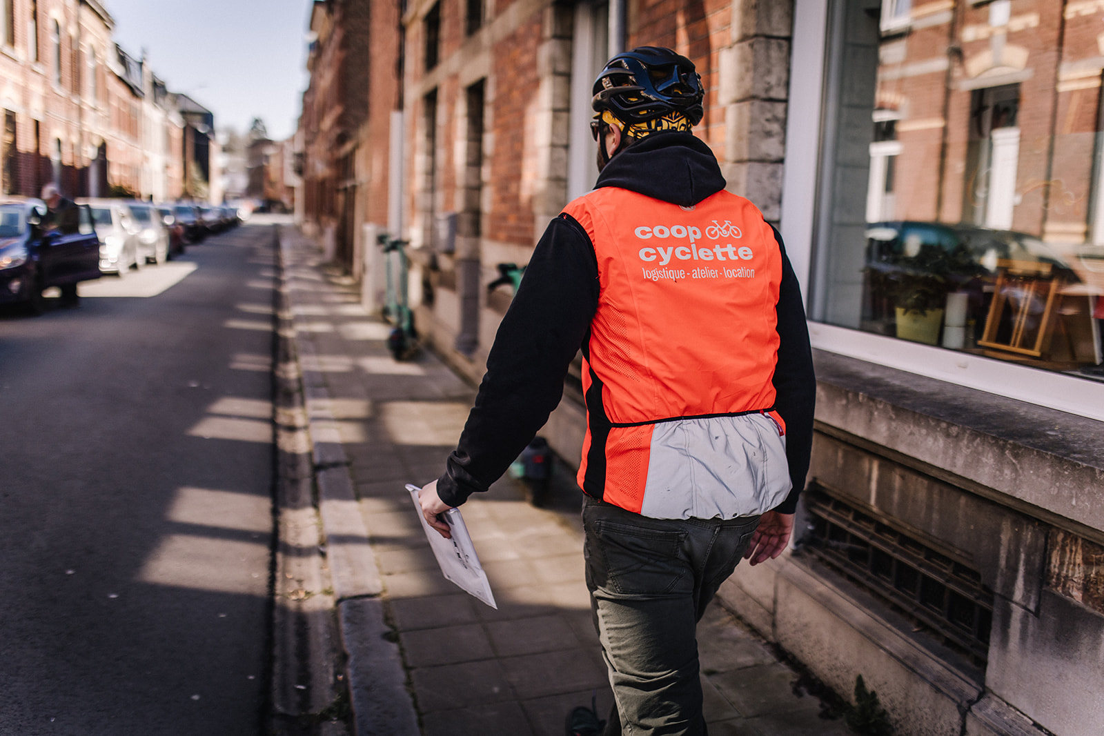 Ces colis renferment un livre d’un∙e auteur∙ice belge francophone, un dessin de Thierry Robrechts, un tirage photographique d’un∙e membre du collectif Aspëkt ainsi qu’un message écrit de la main de l’expéditeur au dos d’une carte postale. Aucun des destinataires n’ayant passé commande, chacun savourera le moment en compagnie des messagers-livreurs venus jusqu’à sa porte à vélo au départ de Namur. Près de 700 km auront été ainsi parcourus par l’équipe réunie autour de Coopcyclette.