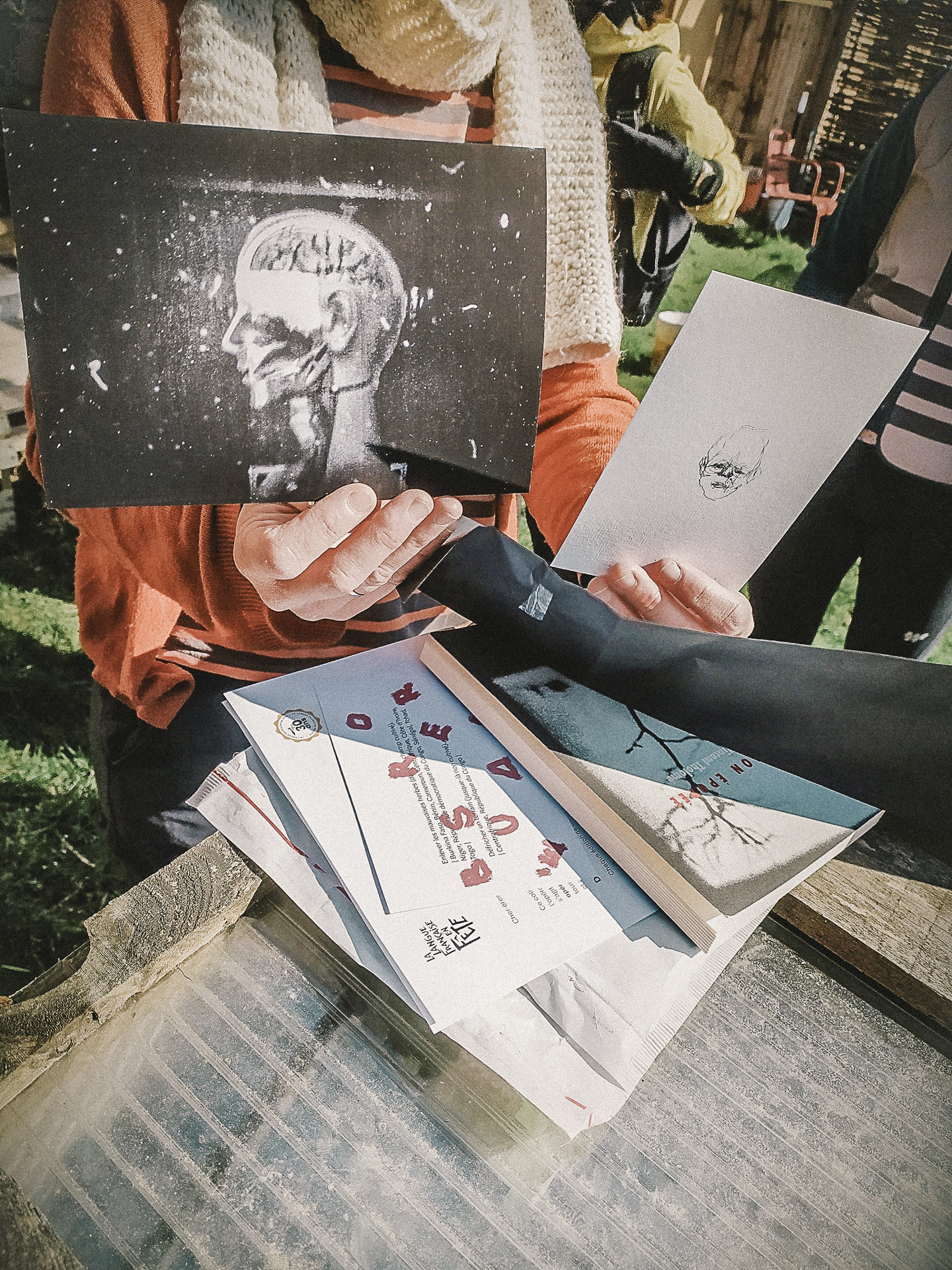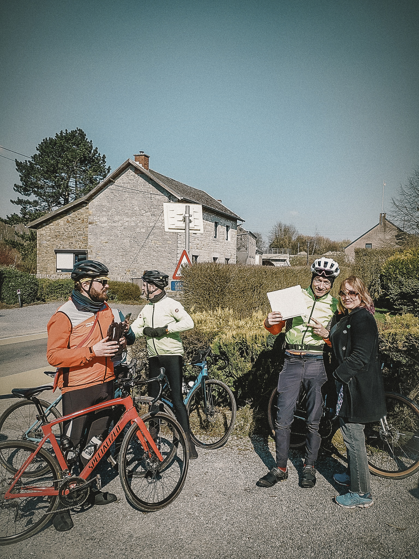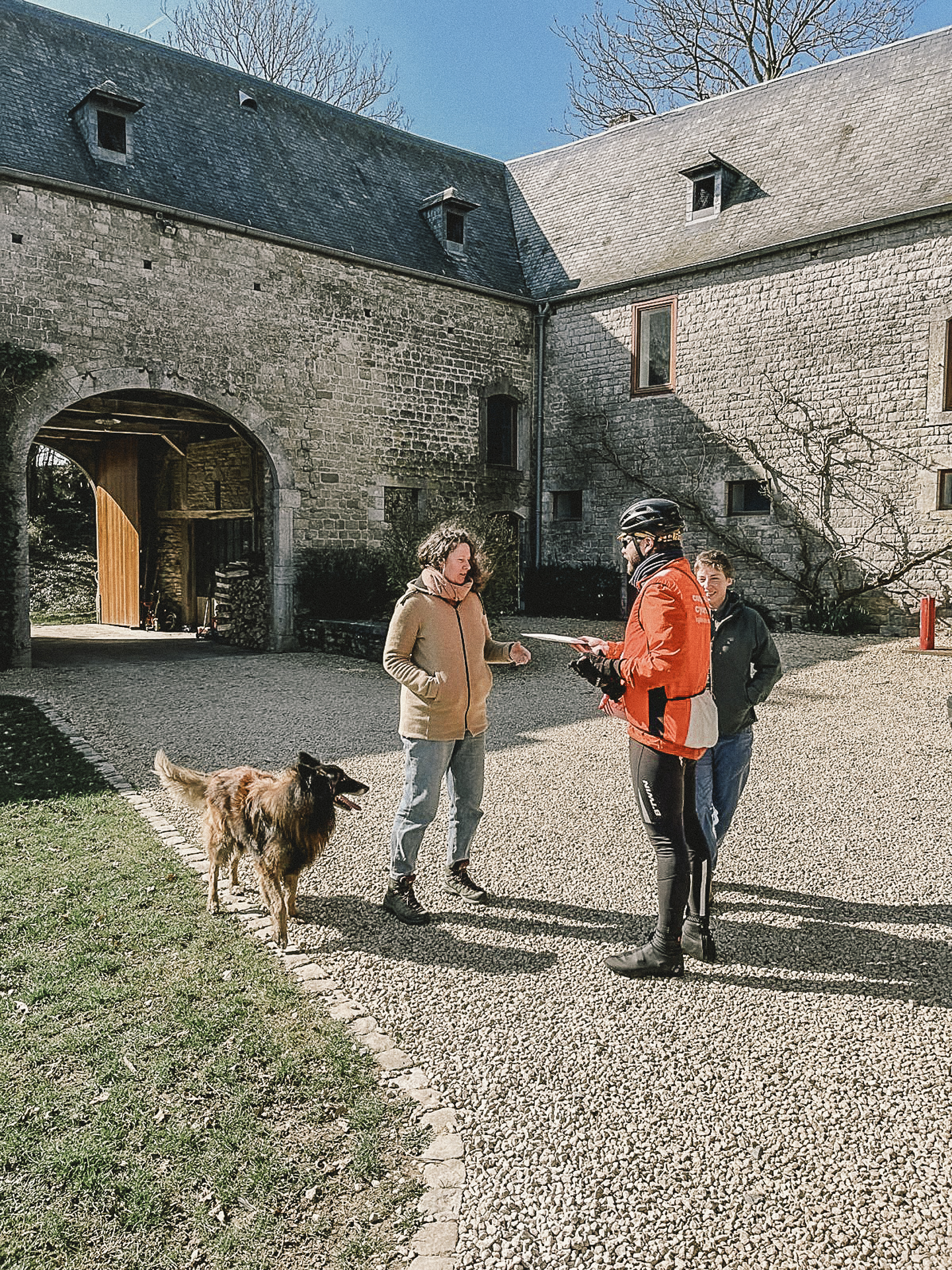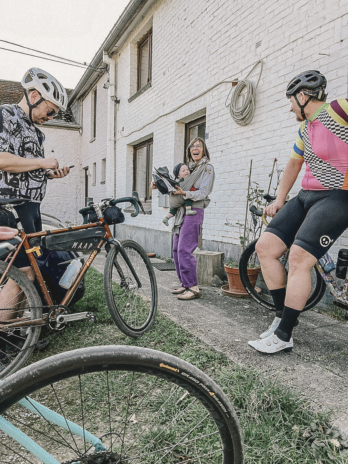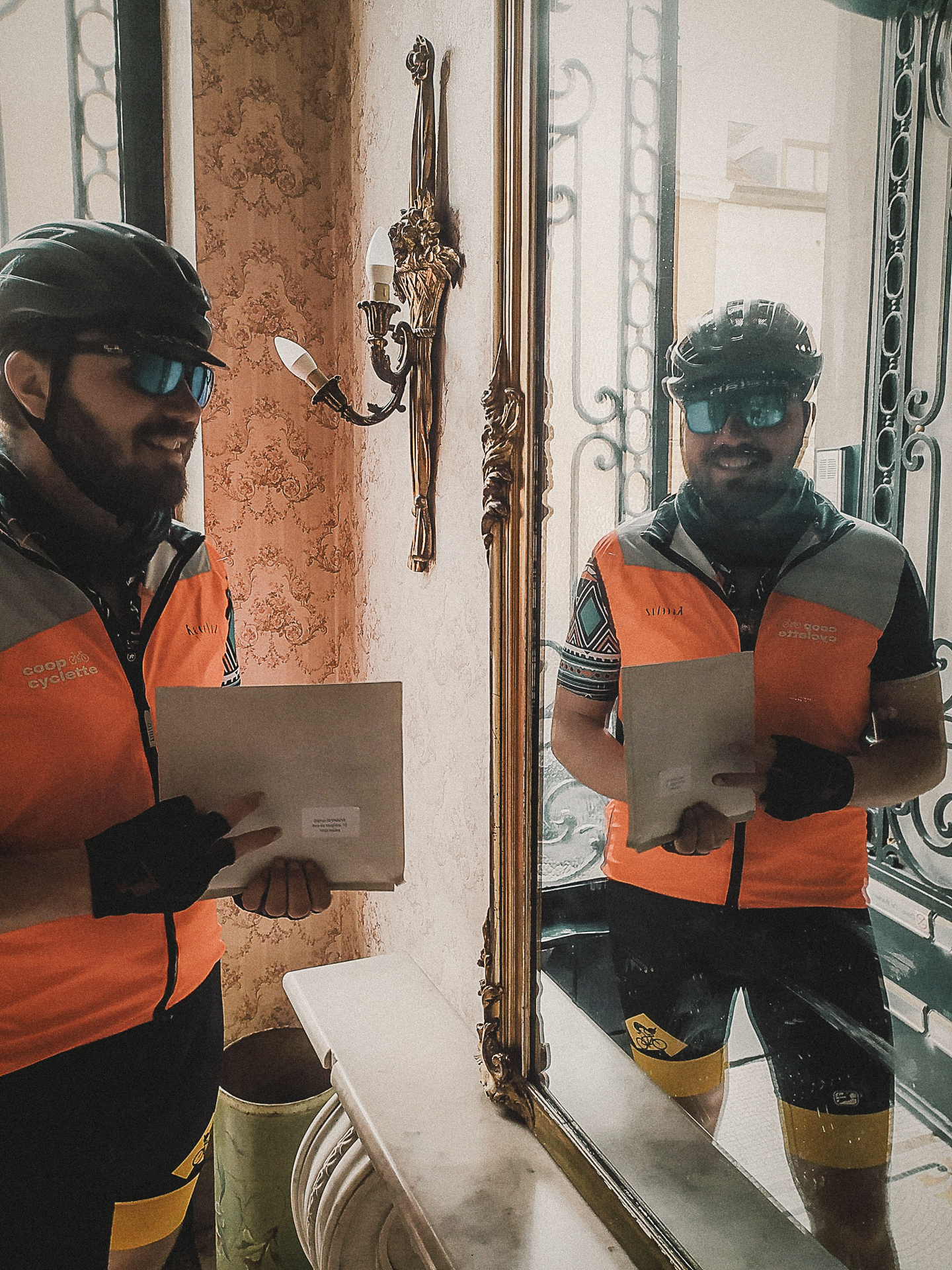 Ces colis renferment un livre d’un∙e auteur∙ice belge francophone, un dessin de Thierry Robrechts, un tirage photographique d’un∙e membre du collectif Aspëkt ainsi qu’un message écrit de la main de l’expéditeur au dos d’une carte postale. Aucun des destinataires n’ayant passé commande, chacun savourera le moment en compagnie des messagers-livreurs venus jusqu’à sa porte à vélo au départ de Namur. Près de 700 km auront été ainsi parcourus par l’équipe réunie autour de Coopcyclette.