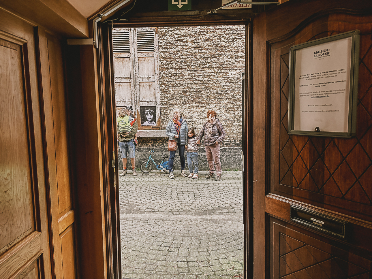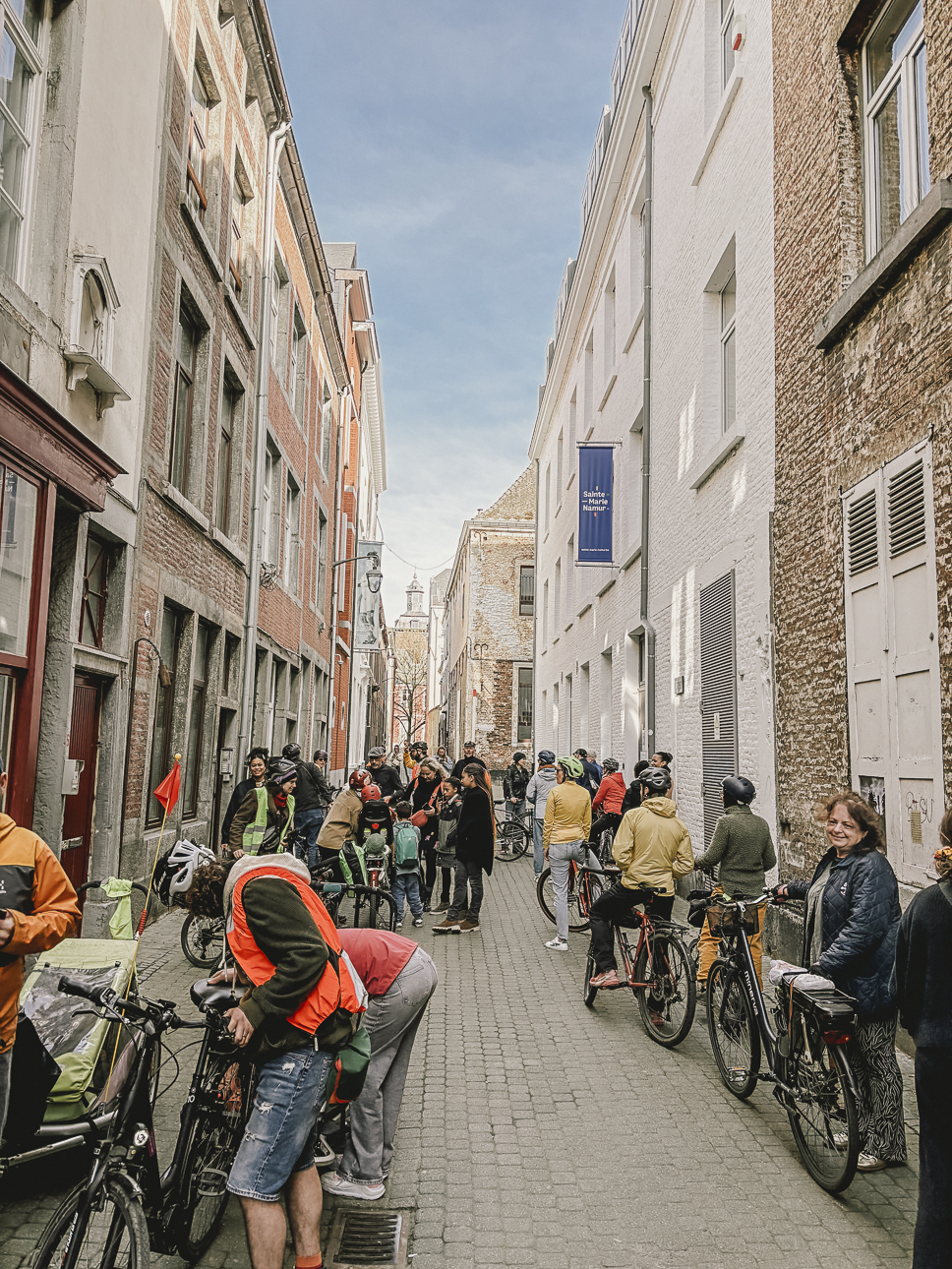 En point d’orgue de Dis-Moi Dix Mots, au départ de la Maison de la Poésie, vous étiez invité∙e∙s le dimanche 23 mars à participer à une balade à pied dans les rues de Namur et une autre à vélo aux abords de la Sambre, toutes deux ponctuées par des arrêts lors desquels vous avez eu l’occasion de découvrir des photos des membres du collectif et les dix mots collés là où vous ne les attendiez pas. Ensuite il était question de se retrouver autour d’un pique nique, d’une exposition et d’un concert de Roza. Retour en images…